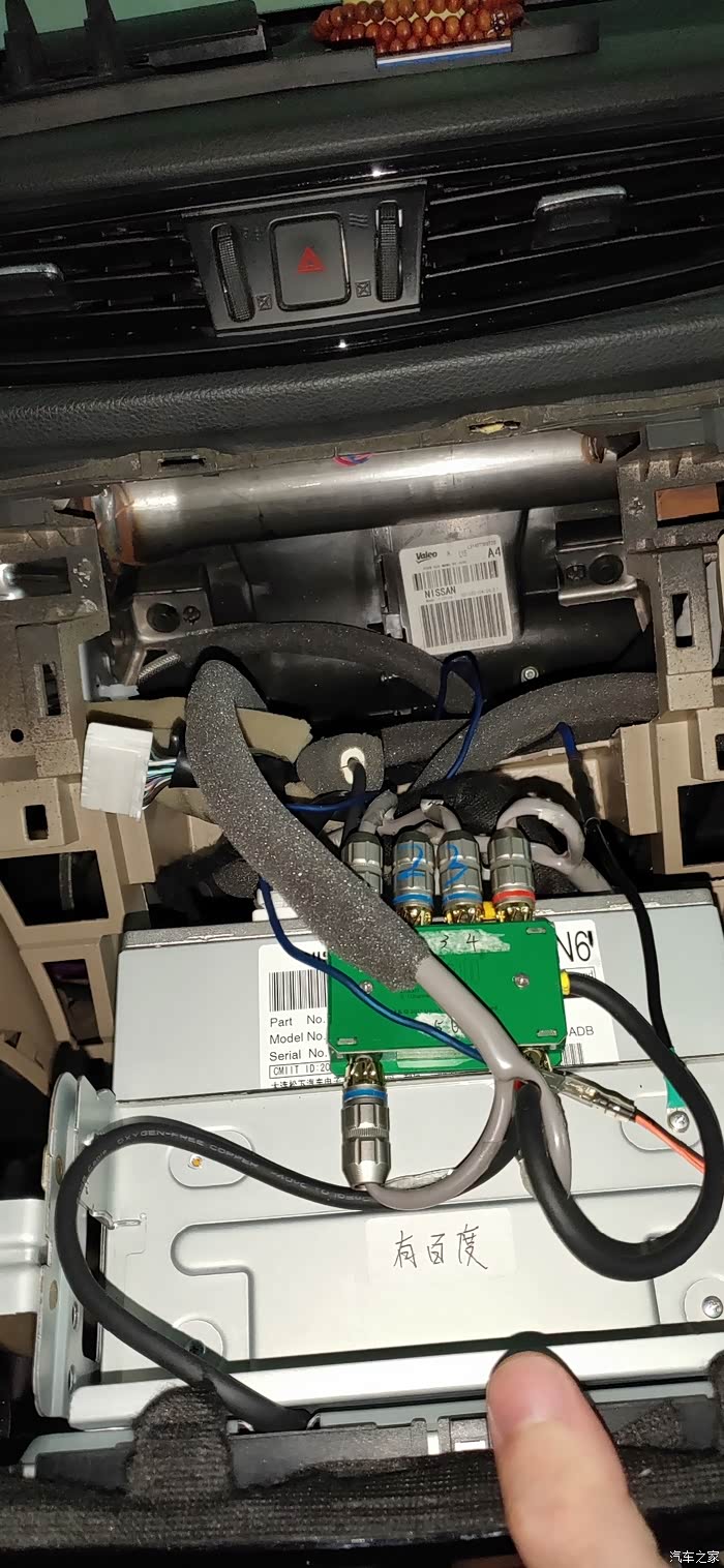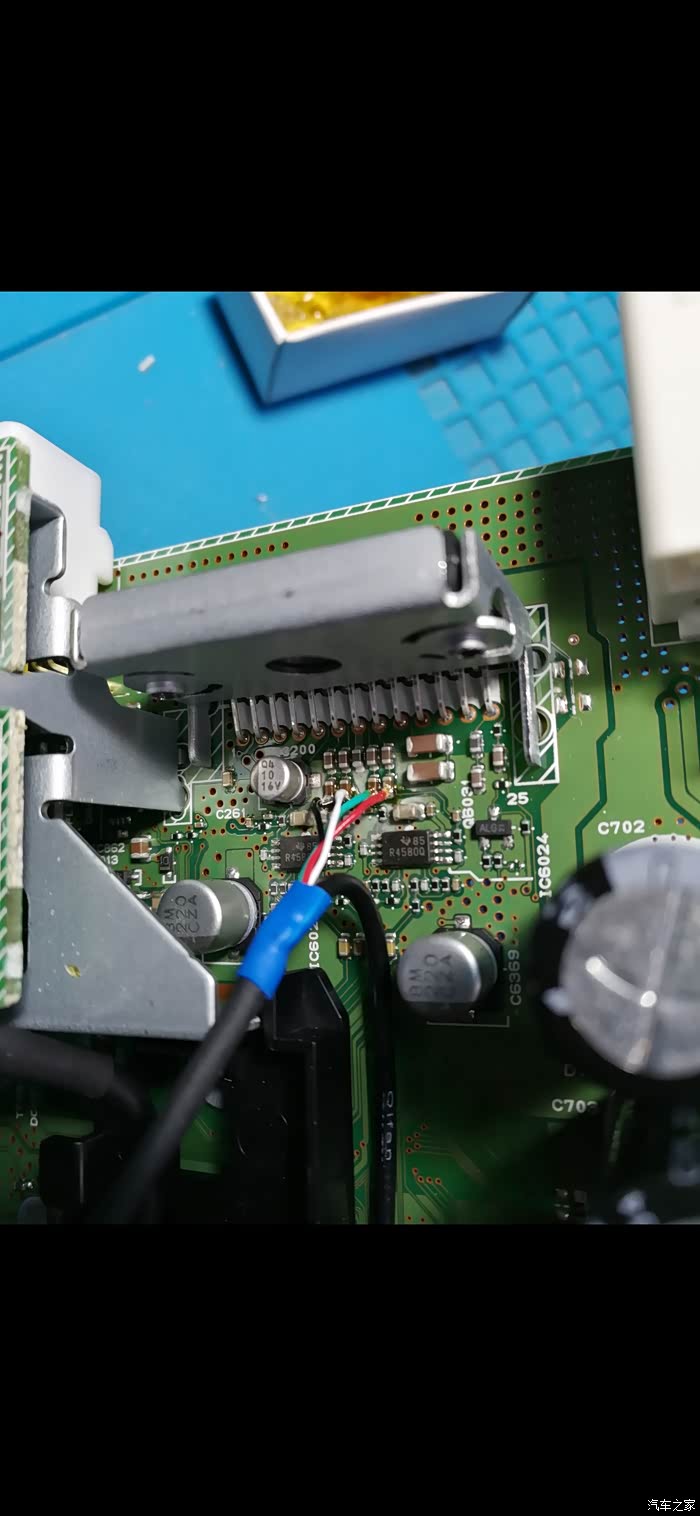 上面两幅图是改低电平的,用的是某宝上买的,但是改完发现有油门口哨声,卖家说我线路可能有问题我要觉得是因为功放在椅子下面空间小所有线汇集在功放下面压着,偶额翻论坛时发现大神建哥魔改了导航立马请教了一下我也去改了,效果不错可能是机头的滤波太差了,改完油门声几乎察觉不到