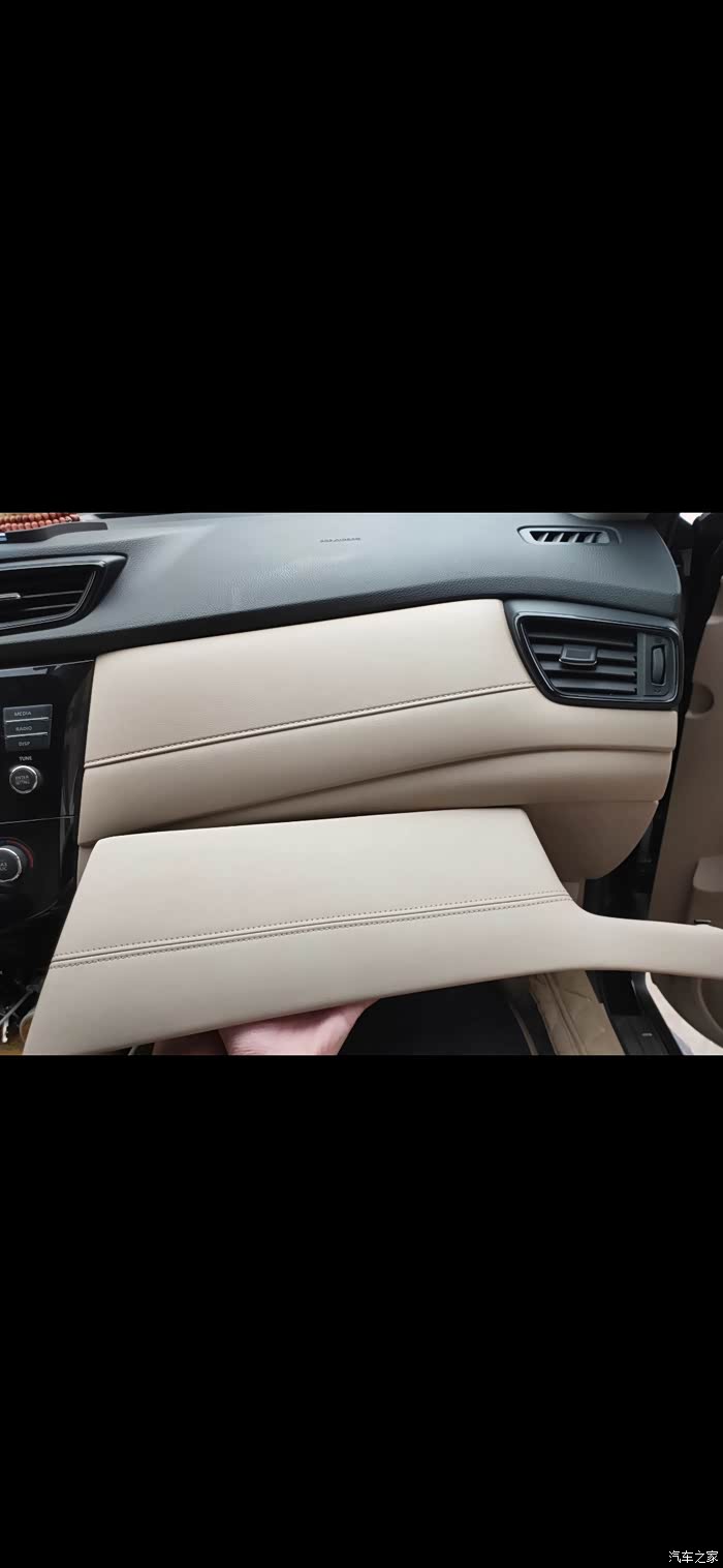 之前去4儿子保养看到19奇骏舒适副驾驶的皮饰板太好看自己上某宝淘了一块全新原装470大洋现在好像下架了,下面这块是原装皮的