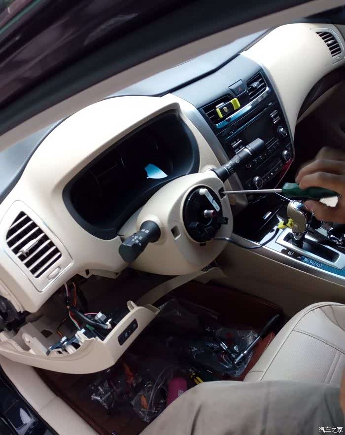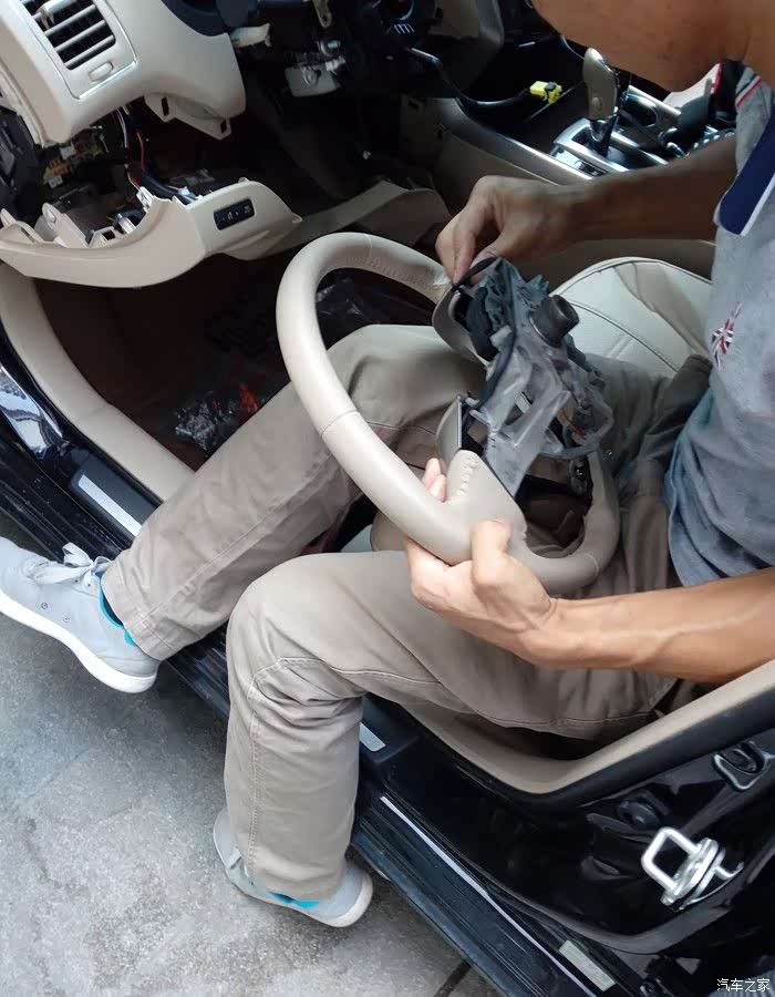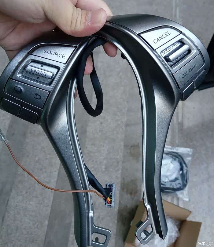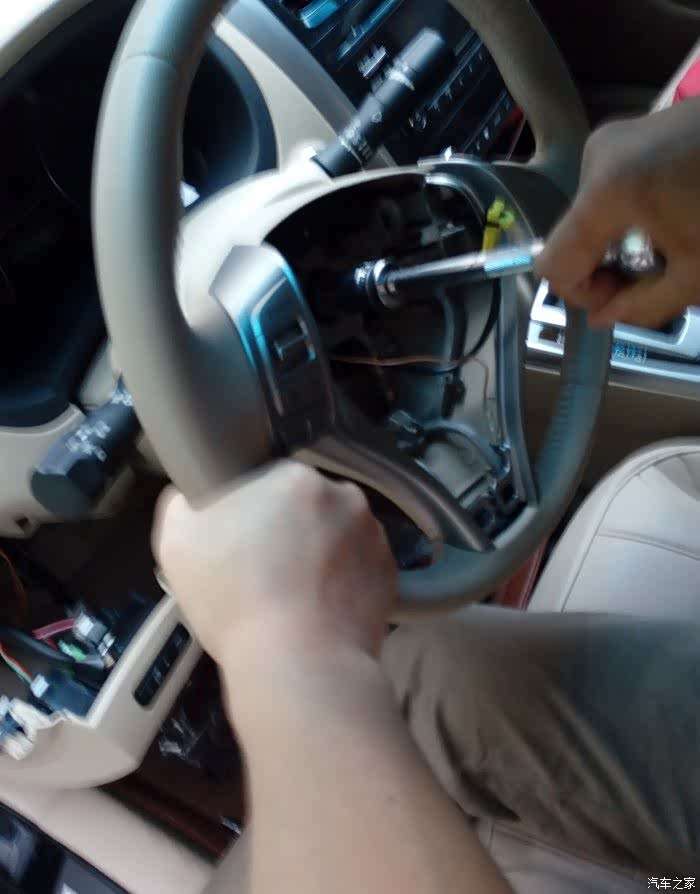 方向盘安装,取下原音响控件,更换新定速巡航开关套件。