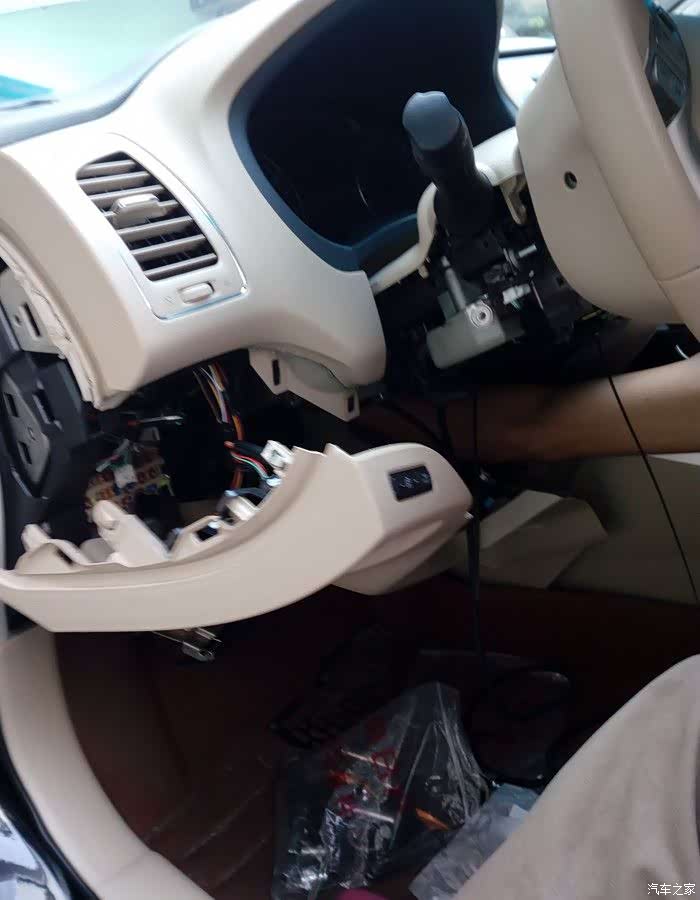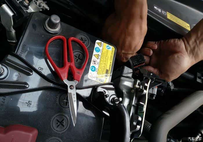 先软件升级,OBD端口无线联通。在写程序同时,我的中控CD开膛,跳线,一气呵成,时尚版的插头要小一号,只有四根通信线,师傅很专业拿出电路图与新插头对接,解决CD音响控制方向按钮问题。