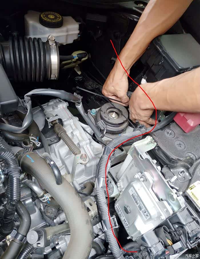 这就是要走线线束的路径,从车内跟着原车线束走到电脑板。