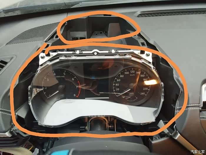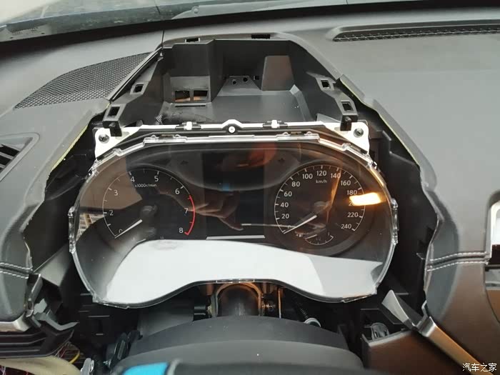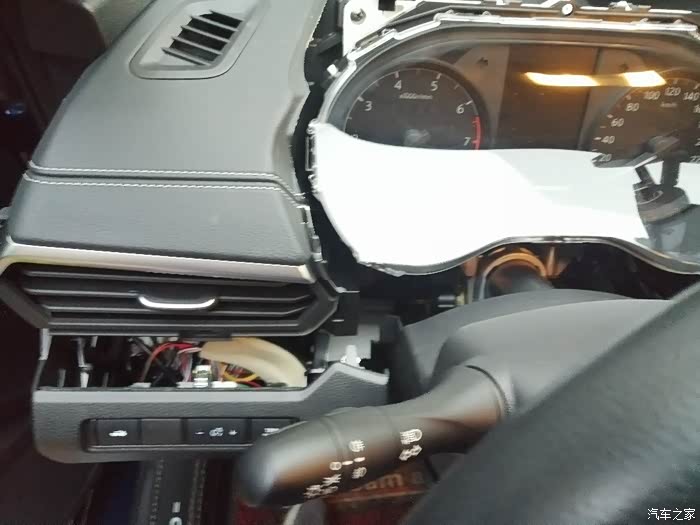 拆仪表面板,这上面是分两块,前面一块是整体的,就撬上面周围,撬开往面前拉开。接着拆开对着车门的装饰板。