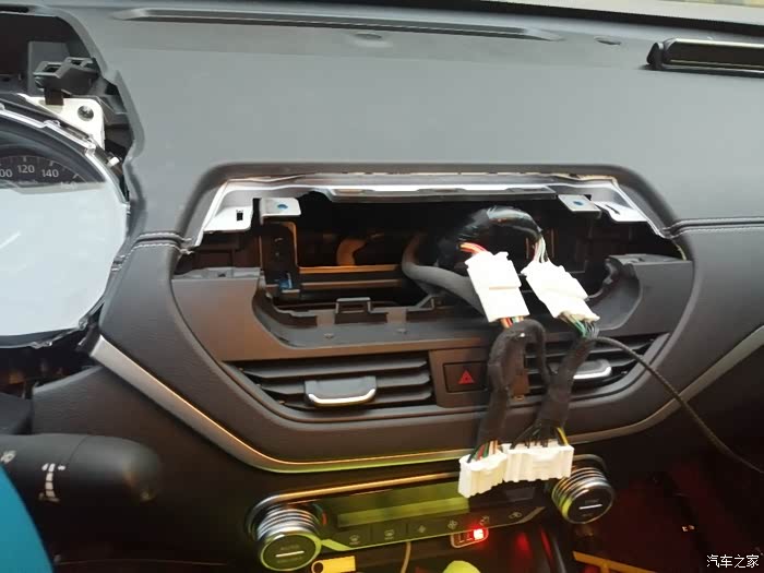 插上主机,再直接装进去,先把车机支架放进去,再直接推进去