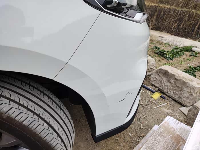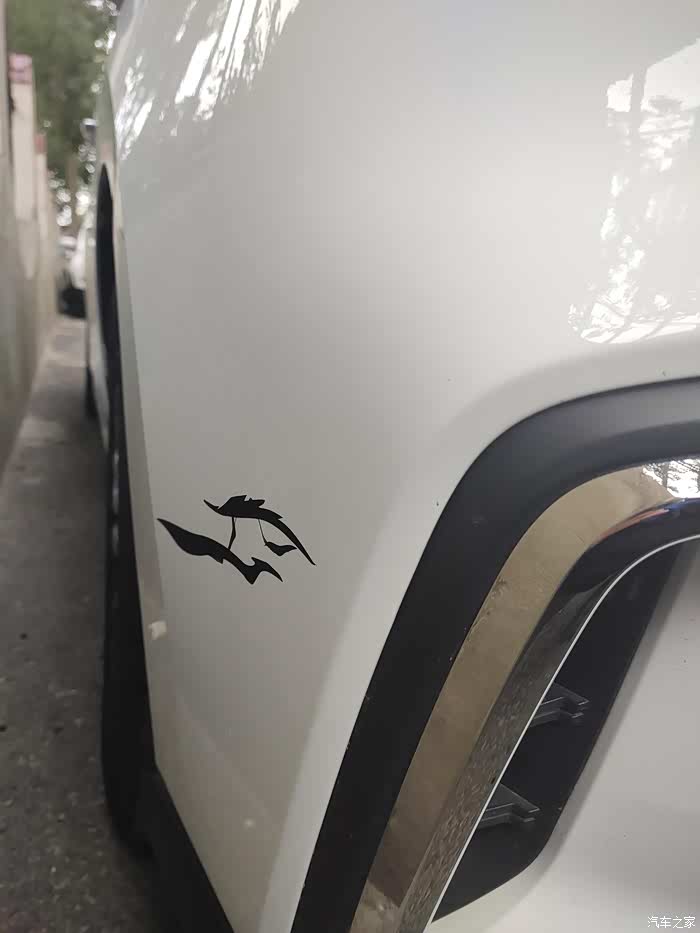 和其他车子并行停车,躲避其他车,刮到侧前翼子板处,有大大刮起车漆,一看是塑料不会生锈,不想做油漆,只能想办法。清洁车子,先去洗车,洗完晾干车身,侧前翼子板的粘贴位置。慢慢的一边贴、一边用工具刮平、一边揭底纸,车贴长宽太大,刮痕又细长,我思考再三,只好选用减下来条纹状贴纸,见图片效果。用干净抹布或刮片[如电话卡或信用卡]在膜上反复用力斜擦或刮几下。弄好以后,看看效果。建议24小时内不要暴晒或洗车。