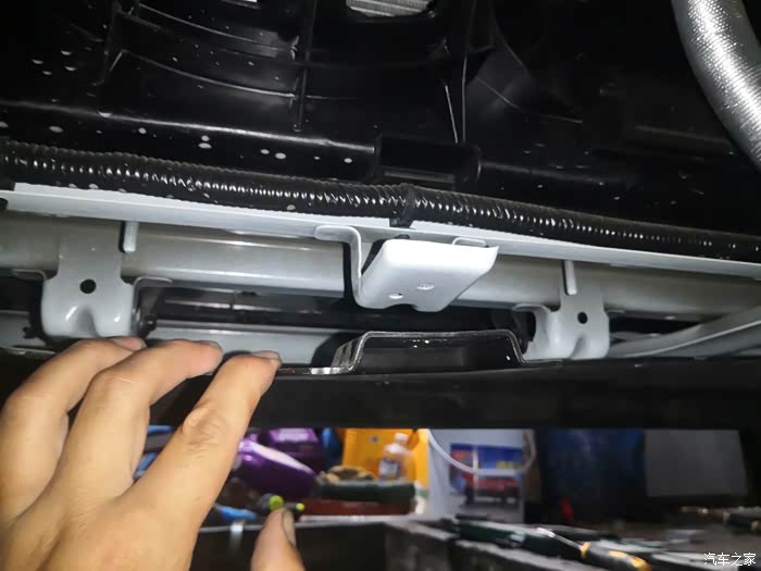 这是前面的横梁,材质为金属的,在低速碰撞的时候不至于都烂掉。这一段比6的塑料衡量强。