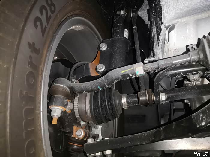 下支臂为单层冲压,螺母还有生锈的地方,才一百多公里这个有点不应该了。