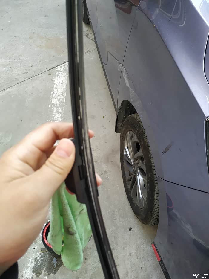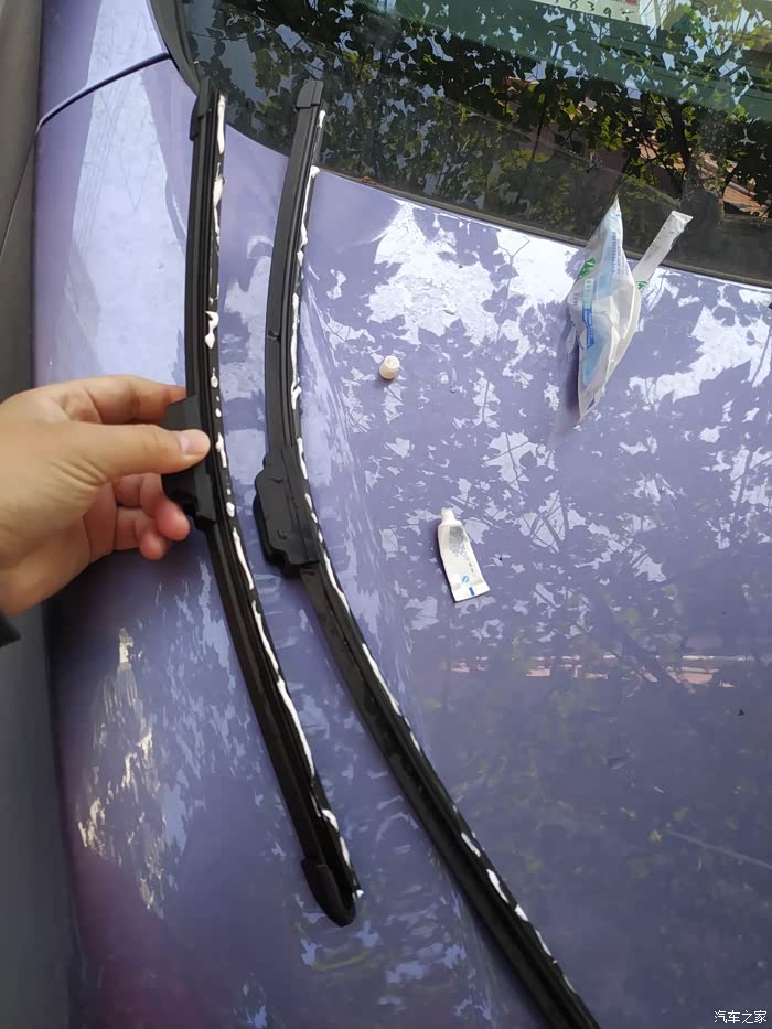 网上说用牙膏和沙皮清洁一下胶条就好了,我们先把雨刮器拿下来,上次说过按一下雨刮器后面的一个小点就能下来了,先用水冲一下,然后用家里拿过来的1500的沙皮捏着橡胶条拉几下,最后用上我们的牙膏,均匀的摸在胶条上,然后装回去,边打开雨刮,边用玻璃水清洗玻璃,来回几次把牙膏冲洗干净就好了,操作简单,成本低廉,是最经济实惠的了,但是也不是长久之计,只能救急使用