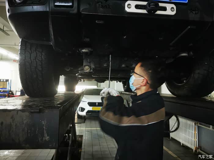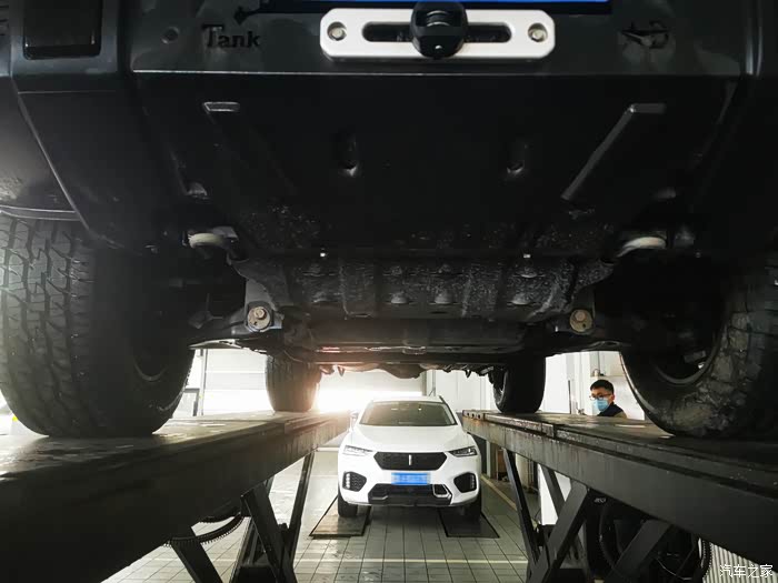 送下护板,坦克由于是越野车,底盘防护方面做的更加的全面