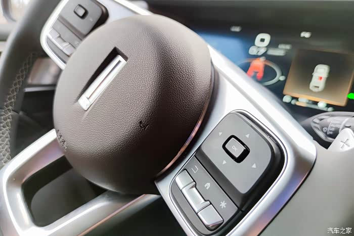方向盘也够硬派,经典的T字造型,不过功能键这么多,一看是科技感十足。