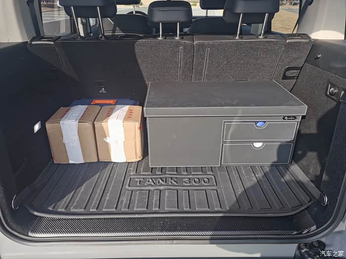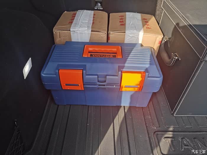 后备箱放了一个储物箱,虽然挺占空间的,但是后备箱不显得杂乱。