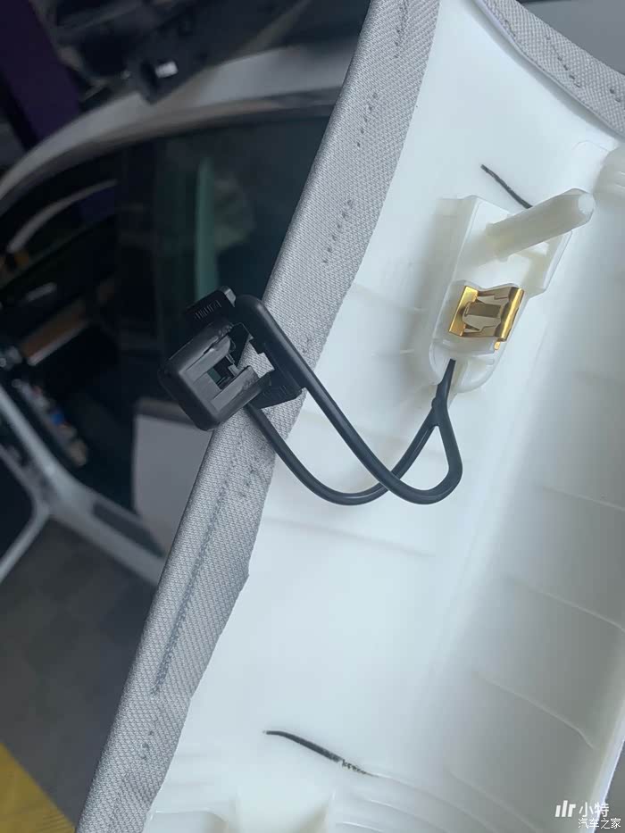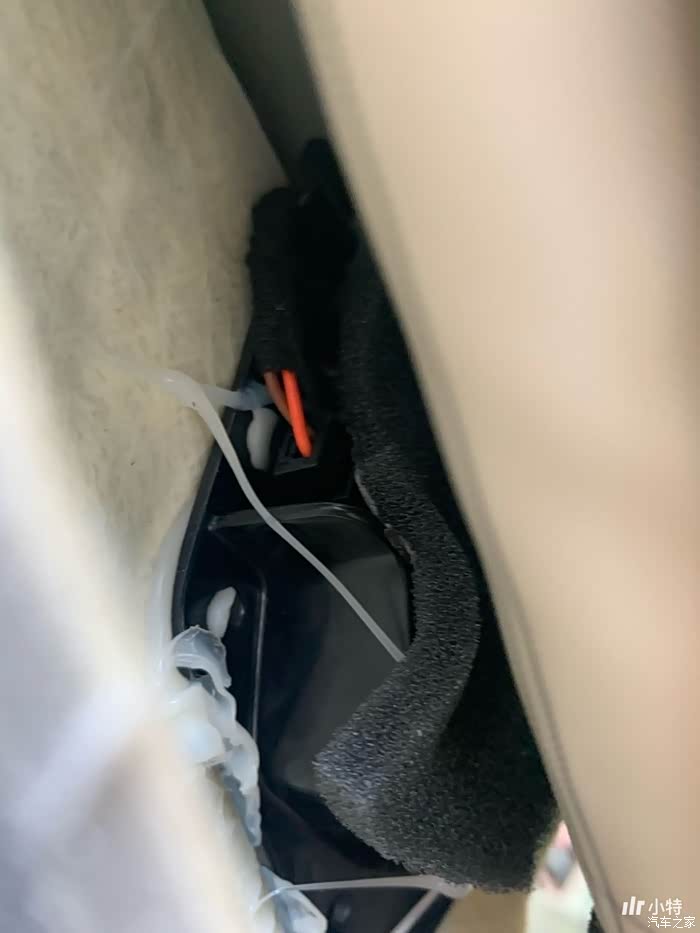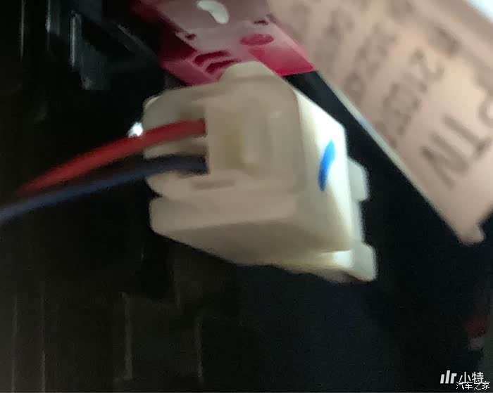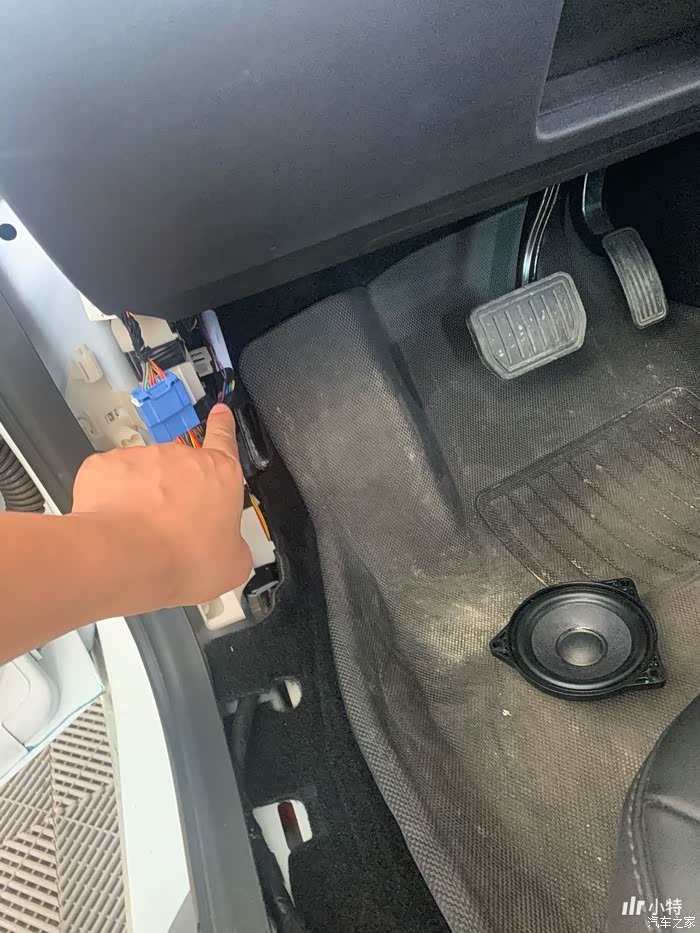 前门高音喇叭接线状态:插头插上的,线的另外一头在仪表台下。