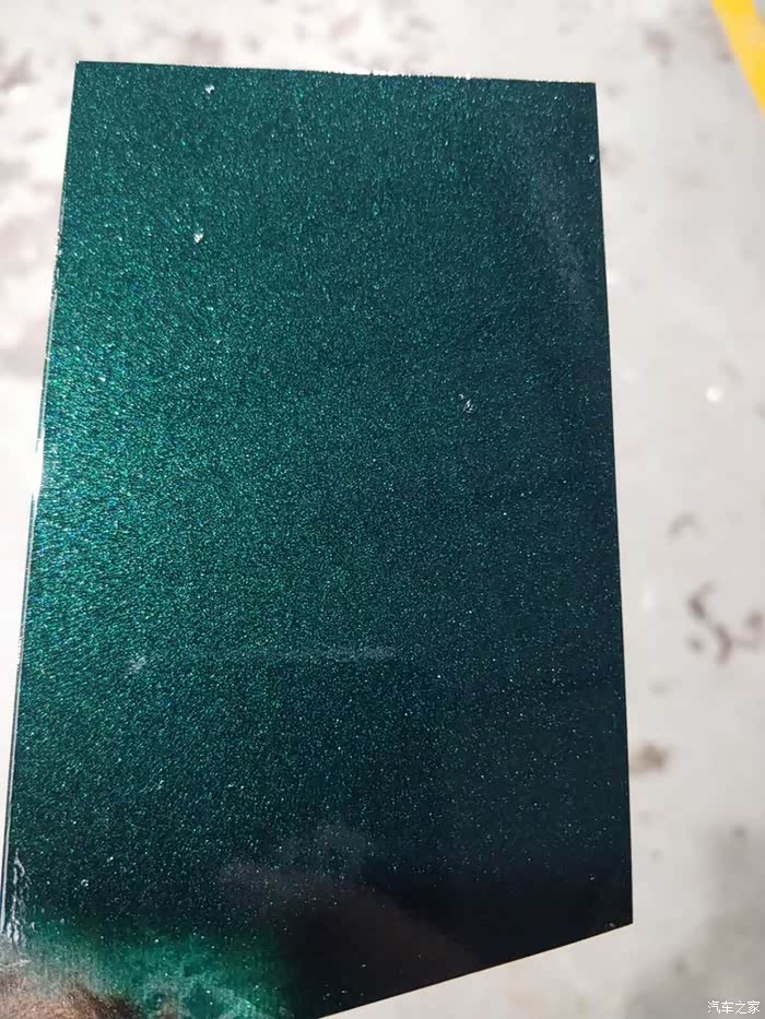 这个是从大众那里拿回来的色板,是甲壳虫的一个颜色,叫翡冷翠。