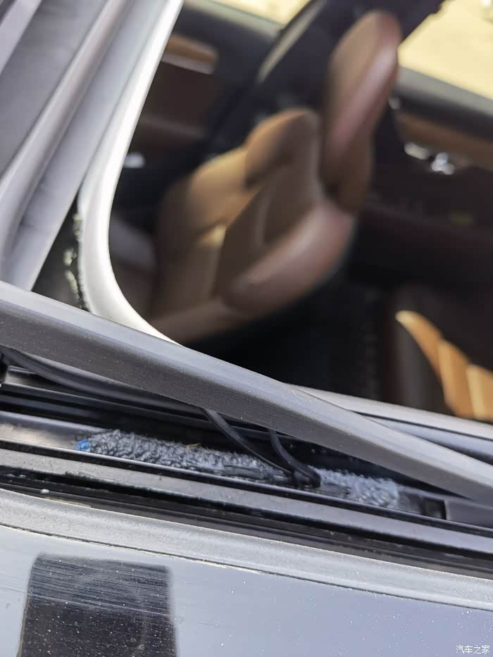 天窗,在咱们沃尔沃车系里是标配,S90的是全景天窗,尺寸很大,透明玻璃,挺适合在夜晚看星星的。第一对胶条进行清洗和润滑,首先是清理天窗胶条,用湿巾把胶条上面灰尘擦掉,记得胶条内侧也要擦一遍。然后喷车窗润滑剂,主要的功能就是软化胶条。 第二建议定期更换天窗胶条,不过天窗胶条毕竟是橡胶做的,时间久了老化在所难免,和雨刮胶条差不多的,天窗胶条推荐去维修店换了。第三清理防尘网和天窗边角缝隙,窗胶条弄好之后,就是清理防尘网和一些边角的缝隙。天窗缝隙里面树叶、杂物清理掉,防止堵住泄水口。有车有友反应说天窗漏水,大多数情况都是车窗的泄水口堵住了,其次是密封胶条老化啦。雨季来临,注意检查一下这几个关键位置,就不会出现外面下大雨,车内下小雨的问题。写的不好,拍照也不好,您就别挑剔啦,给点个赞吧。