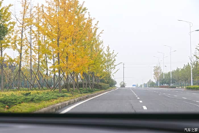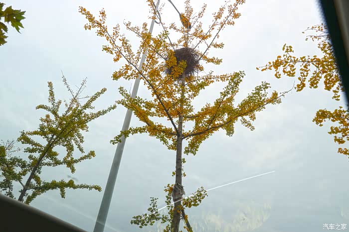 金秋,树叶没有春夏那般绿,金黄的银杏叶,很漂亮,白色的VV5格外的引人注目。
