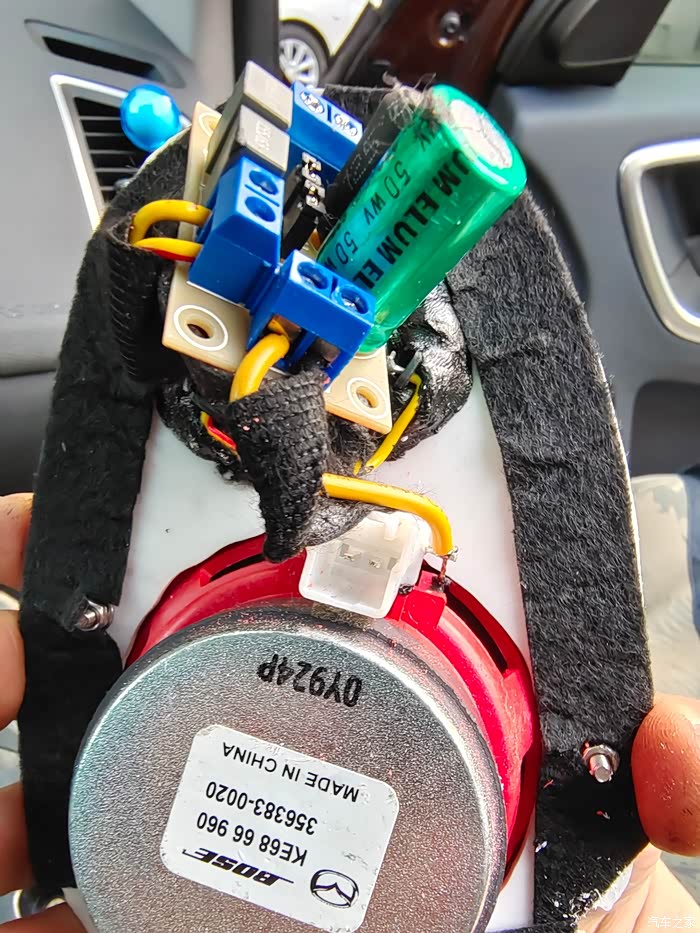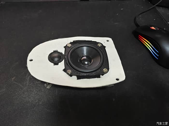 这次中置喇叭高音用的宝马拆车高音头,中置是马自达拆车喇叭。
