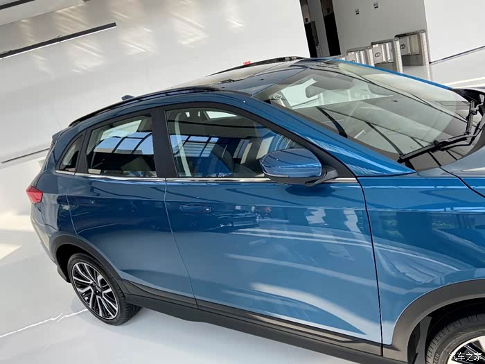 车身侧面的造型和老款相差无几,吸引我目光的是这台车的轮毂样式!锁车反光镜自动折叠和无钥匙进入这两个功能极为实用,这个EX5上也有配备。