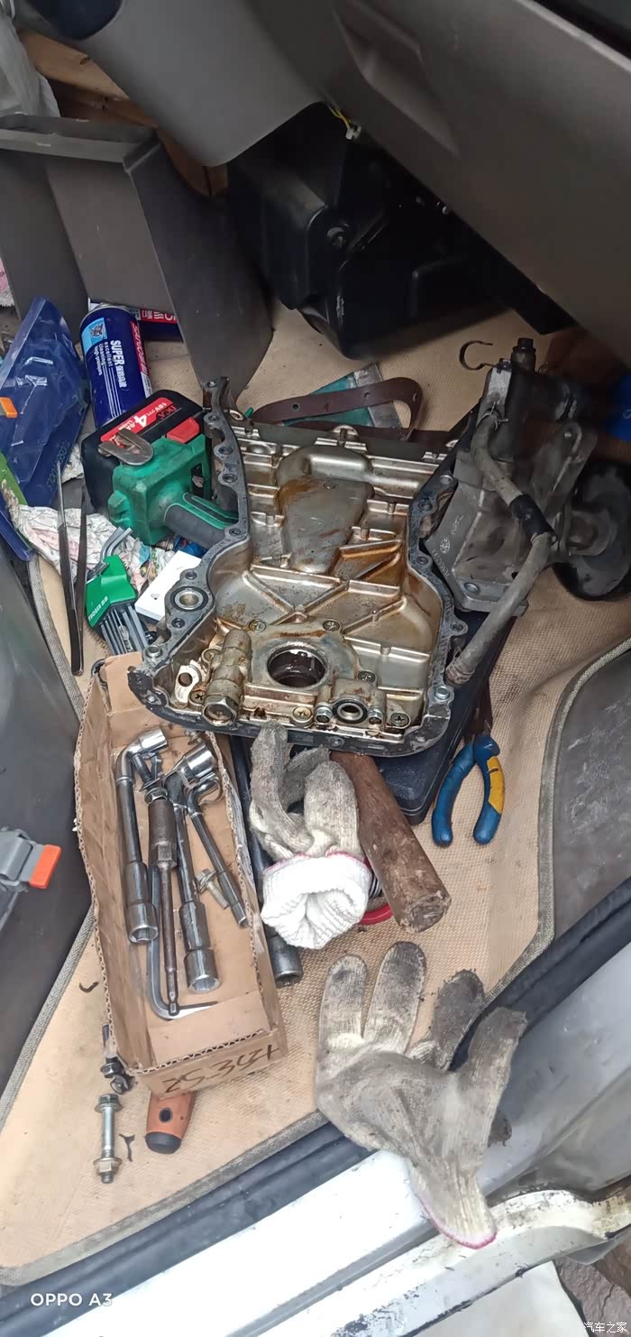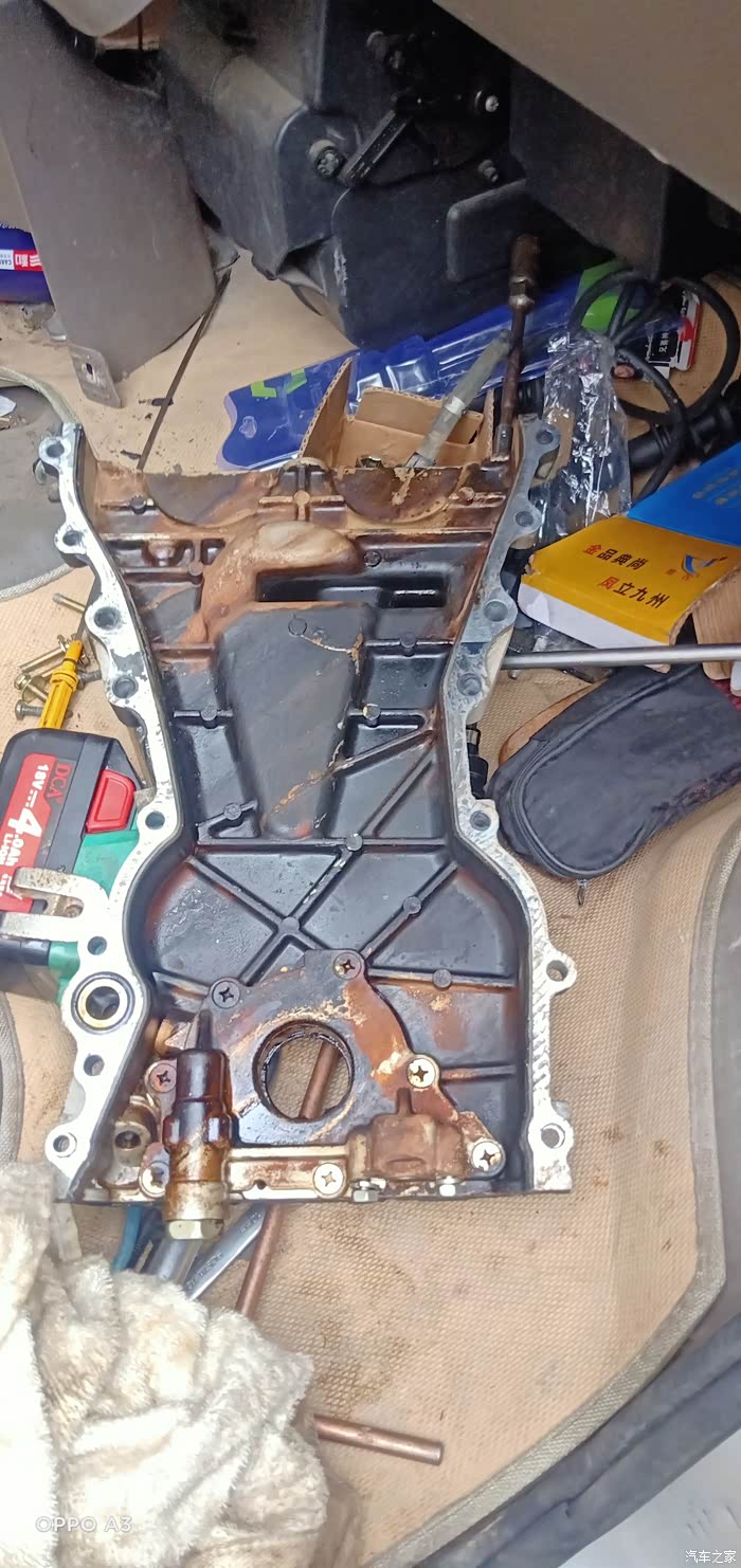 10年3月份购进的老款荣光,开了快11年,10多万公里了。一发动车子一听声音不对,好像水壶那里呼呼的吸进去的声音,马上关掉发动机,打开机盖,水壶里一点水也没有,再打开水箱盖检查也没有一点水,难道水箱冻漏了,于是拿来几壶水一直加水箱里,也不见满起来,车底下也没漏水,奇怪了,加进去的水到哪里去了呢?后来一想不对,拨出机油尺一看机油颜色,完了机油严重乳化了,机油进水了。打下油底壳放油螺丝,着先出来两大盆水,最好才出来奶油一样的机油!那肯定是发动机坏了,找了几家修理厂,都说要换发动机,最少4,5千,还说不值得修,要拖车拖过去也麻烦。年底了很多修理厂都很忙,都不愿意给你大修发动机。加上自己年底也很忙,过完年,有点空了。想想自己20多年搞维修的经验,一般工具都有,又网上买了几样专用工具,求人不如求己,自己开干了。