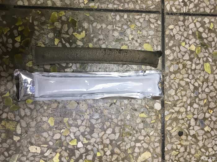 这是冷凝器李的干燥条,很脏。放置干燥条的铝管壁上有一层像泥巴一样的东西,旁边是新买的干燥条长度24公分。