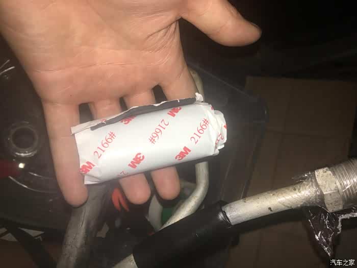 这就是胶泥,这东西还可以用来包裹冷媒管,包裹部位是管道与汽车固件处。好处是韧性大,减少管道与车体的摩擦。也许有人说可以用泡沫,泡沫不行容易磨损掉,其次汽车管道有高压和低压,高压温度高,低压温度低,泡沫在这种环境下减震效果肯定不行。