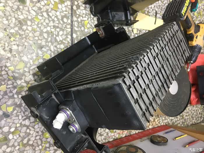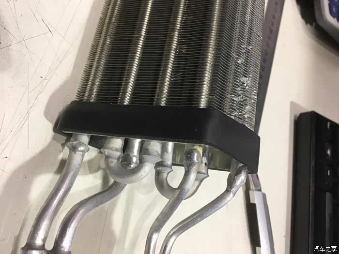 新买的蒸发箱是铝管,原车是铜管,不过制冷效果,只是铜管看腐蚀性好些,更耐用。新到的蒸发箱卖家有加压,把堵头拧开是砰的响了一声。看来出厂还是测过漏的