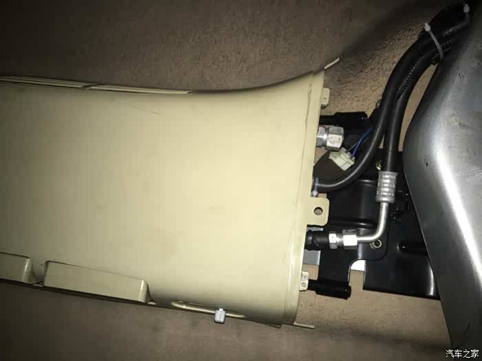 这是顶蒸发箱,看到我手上这个黑东西了吗,之前以为是温度感应器,所以没有"手贱”去捣鼓它,这就是该“手贱”时不“手贱”。害我返工。看下图。