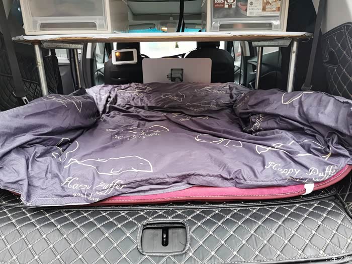 变床时冰箱和餐具盒都不需要移动,只要把电动车放在副驾,直接铺床。