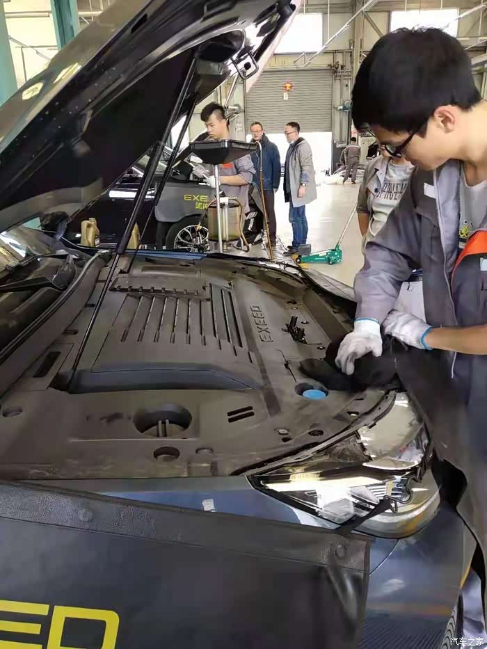 来看看夜色下的星途LX,一样的显眼帅气完好看的车我们去首保吧!来到4S店,有专门的客户经理接待,直接把车开走了,跟我交待了一下首保哪些,然后安排我们到客户休息室休息了,说保养完毕会通知我过去。休息室有桌球,有电脑有电视有免费饮料和小食供应,心中还是想看看我的爱车,于是出来保养现场看看