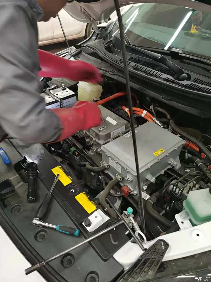 等到车子上机位之后,技师小哥哥先按照操作流程给我更换逆变器。