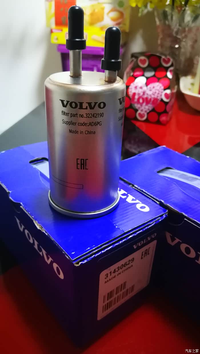 网购的燃油滤清器,包装和主体编号不同,安装角度的标定线与原厂的也不同,好在技师处理的比较细心。