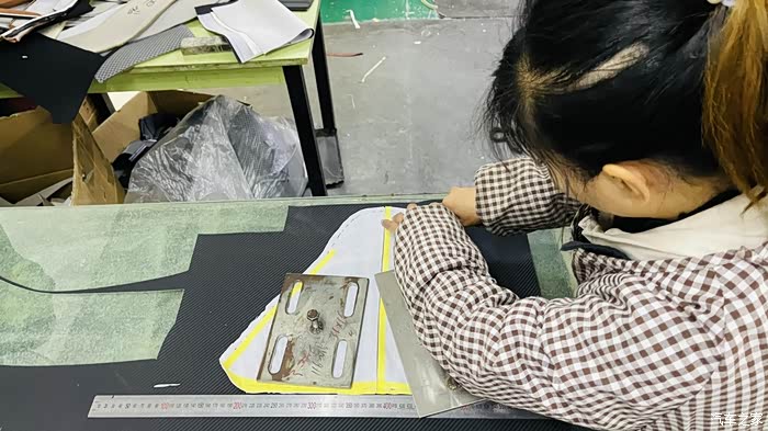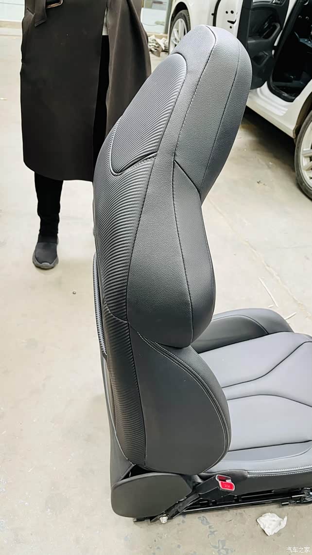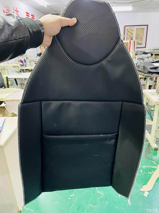 这种碳纤维材质老板的工厂店是用作座椅装饰材料使用,给头枕或者椅面做条形点缀我说就是它了!为了验证耐磨我用铁器使劲划过“靠谱”就选定它为主材料开始设计改装方案及走线纹路!