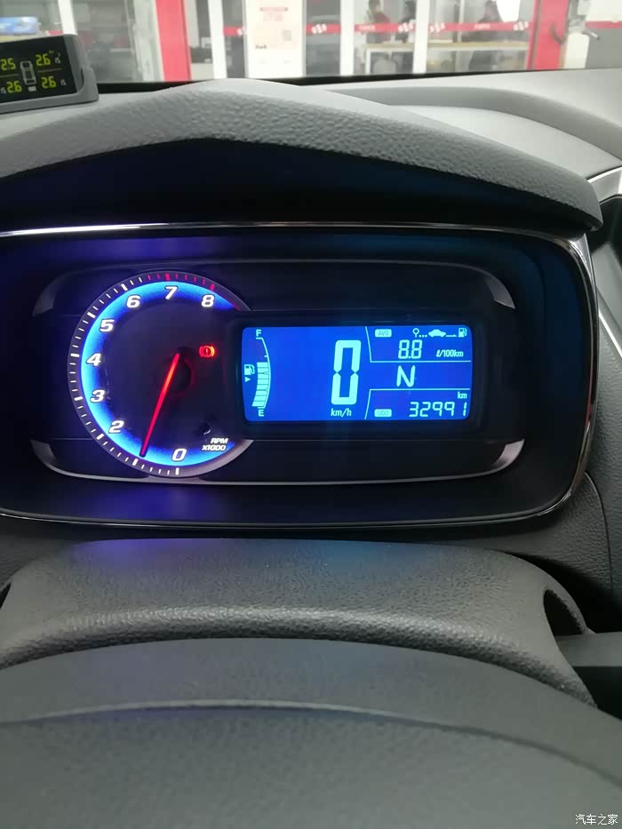 胎压外置显示屏,也没调整,前后显示反着呢!以前是交叉换位,这次前后换。主要上次换位后,粘结那个轮胎,在右前方,这次换位后,再用几个月,就换换轮胎。