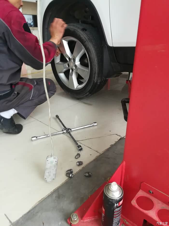 师傅车又降降,挨着地面,找来,这个工具紧螺丝