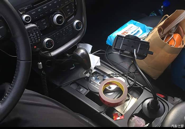 水杯位支架安装电台的时候我参考了网上安装控制面板的方案图片,再考虑行车安全,气囊位置和安装便利度,选择了水杯位的支架。
