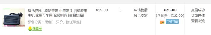 喇叭没有使用HAM品牌的喇叭,上网找到了据说是摩托罗拉车载电话附件的喇叭。这个喇叭是单声道,但原来接头是摩托罗拉自己的,可以把接头剪掉,买个免焊接单声道插头使用。