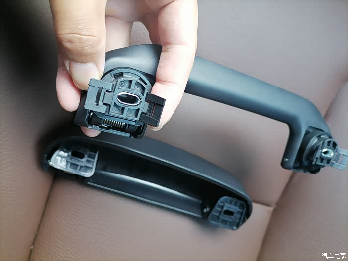 拉手很容易拆下来,原厂拉手做工确实很好,设计也很合理。后期购买的眼镜盒安装简单,两个螺丝拧上即可。