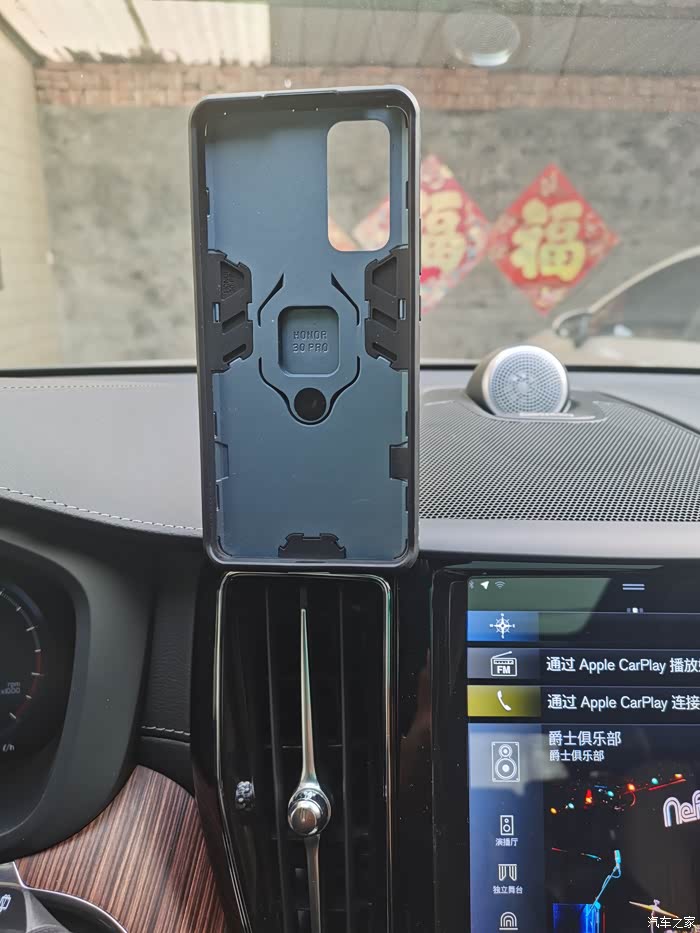 3、手机支架,买的磁吸式的,配合自带磁片的手机壳,使用非常棒。不会影响开车视线的。