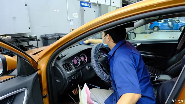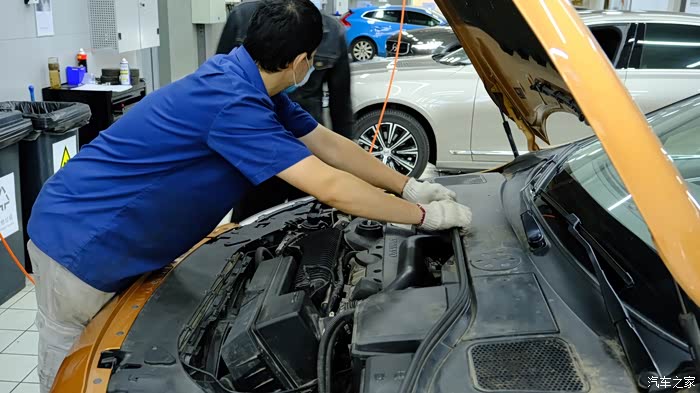 师傅保养完了,两个师傅配合一起检查所有的灯光也没问题。还给擦了仪表台,我是头一次遇到,太细心了