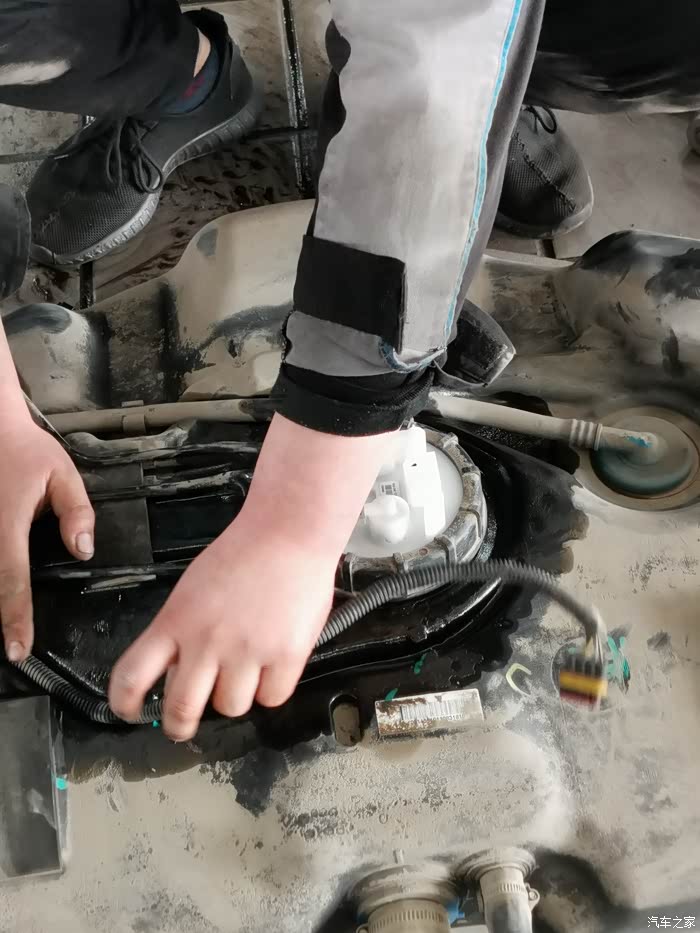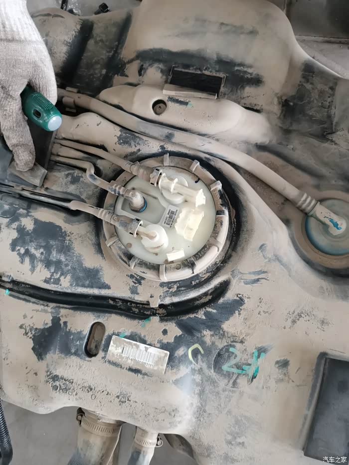 油泵外面脏兮兮的。灰尘太多,竟然没有泄露燃油。