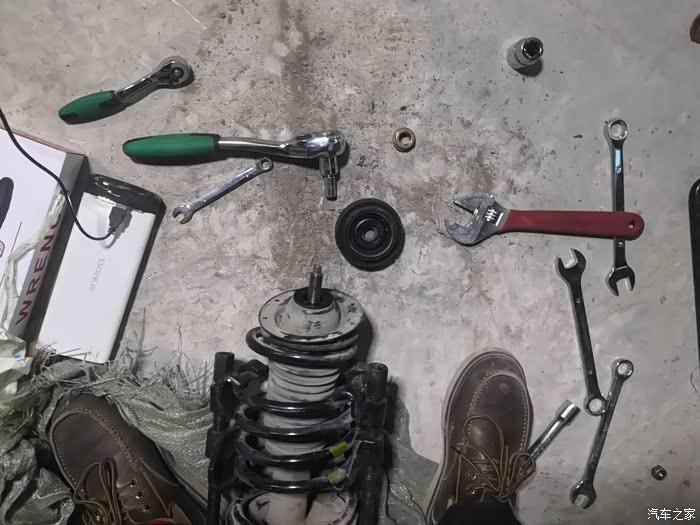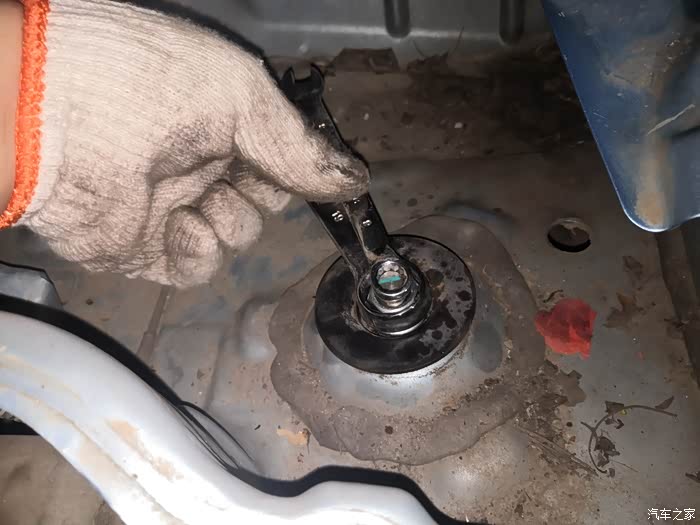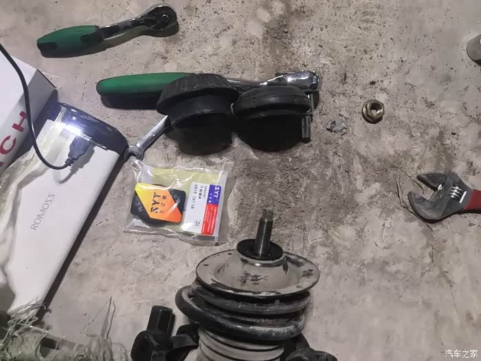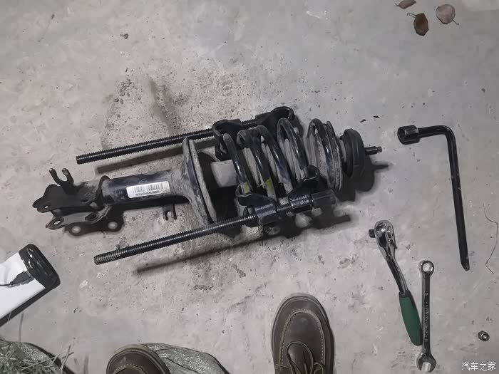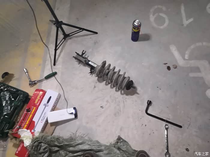 换这个一定要注意,一定的,要压缩好弹簧,其他的都不是难事情。锁死螺丝拧紧力矩是50多,塔顶是60多好像,记不清了。我都是按照力矩上紧的。两边减震方法都一样,就不说另外一边了