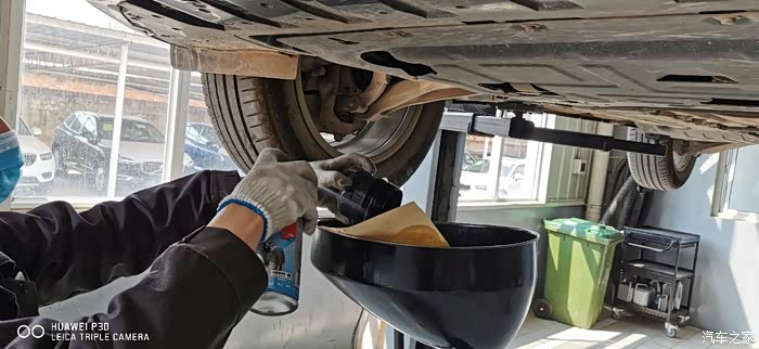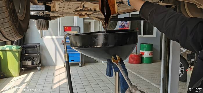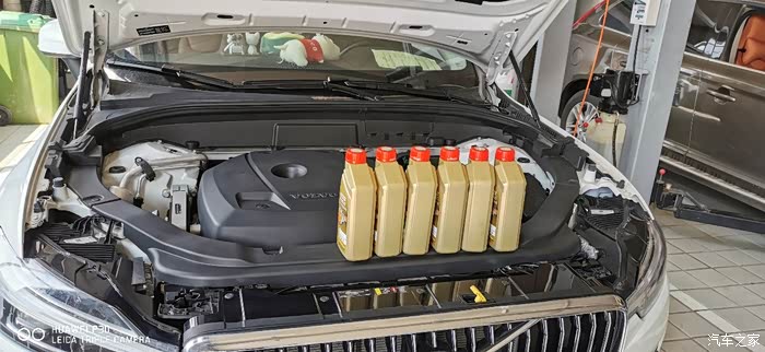 换机油了,小瓶装,一共6桶,每桶1L。最终加了5桶半,剩半桶小哥给我放后备箱了