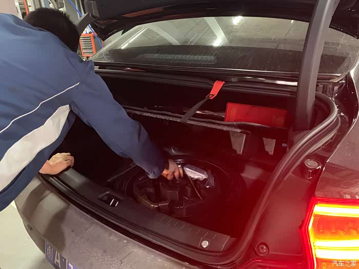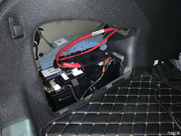 检查后备箱电瓶,这个电瓶价格不菲,主要是用于发动机启停等