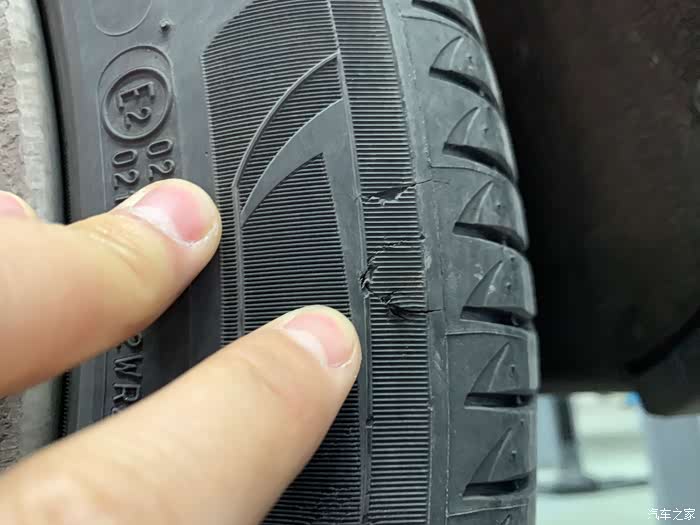 检查四个轮胎,发现了很多这样的小伤口,由于是胎壁没法修补,但对安全倒是不造成影响,后面再开个2万公里准备换掉