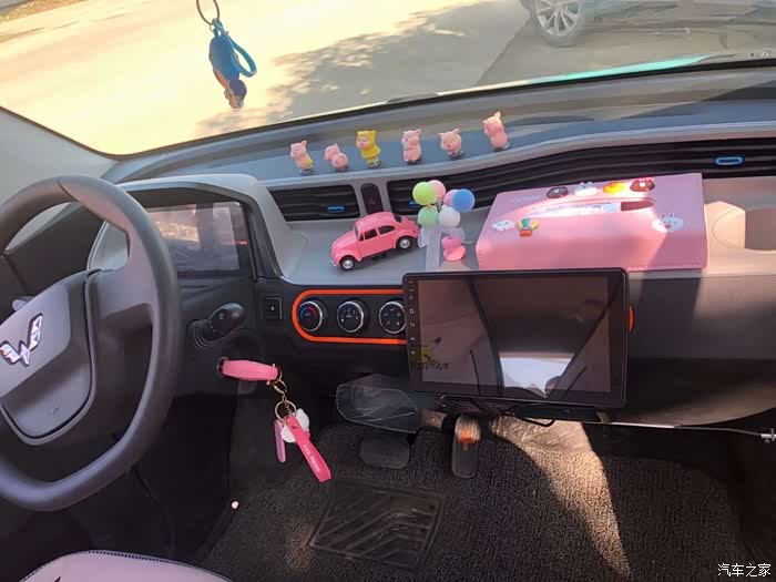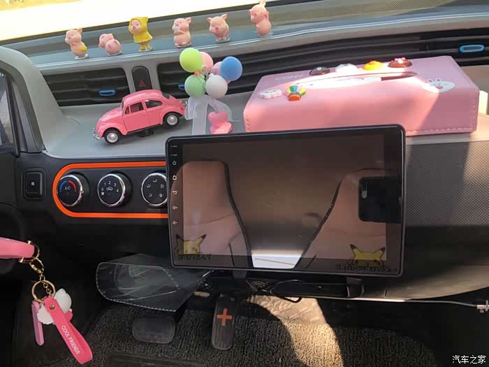 里面的内饰我也稍微装饰了一下,用的粉色的,因为这个车里面原始的配置比较简单,就收音机空调这些。