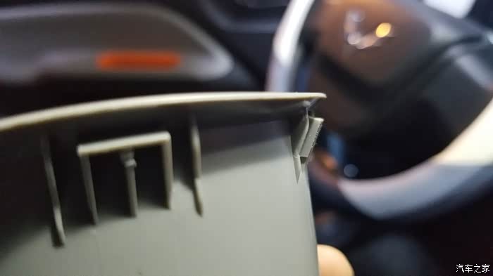 多方位多图展示一下杯座卡扣,知道它的结构了,就容易下手了。这里插一句,我本想试着不拆杯座,直接带着杯座拆仪表台,最终宣告失败。杯座上面对着的空调出风口,里面有一截大概5公分长的导风管,相当于杯座往下插,导风管往后插,二者相互制约拿不下来。只能先拆了杯座,才能取下仪表台。