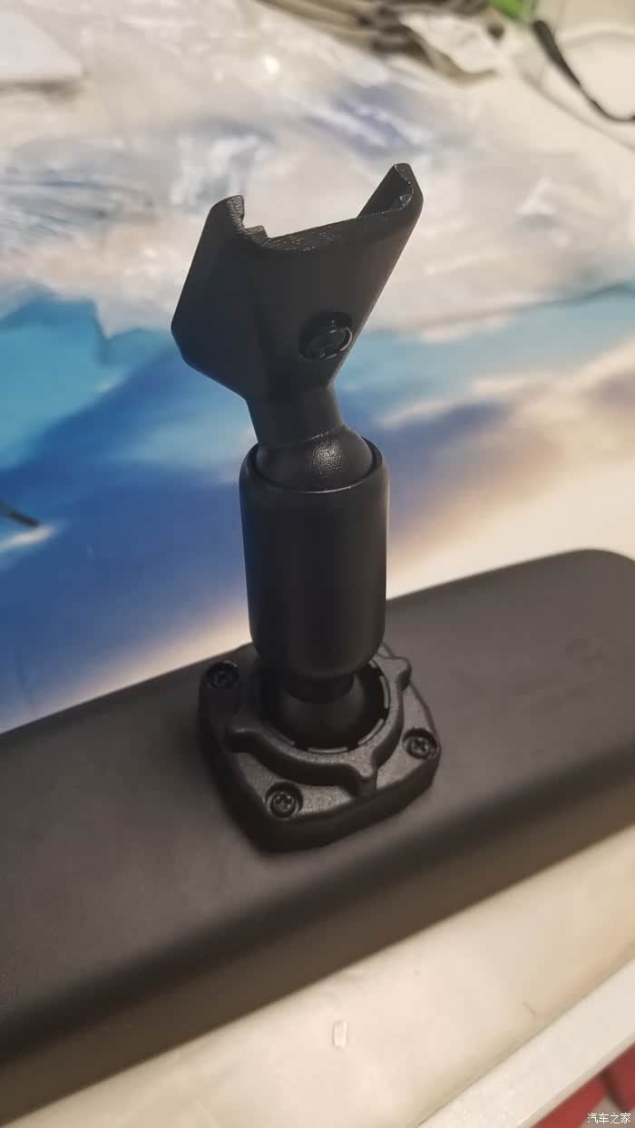 被miniev带红的1号支架。改装后后视镜基本贴到顶棚,解决了遮挡右前方视线的问题,安全还是越有保障越好。
