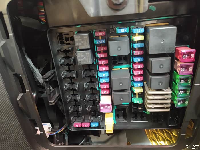 打开保险盒盖子,准备接点烟器,向论坛里其他大神学习后,总结下,为了美观和方便,决定把点烟器收到网兜内。