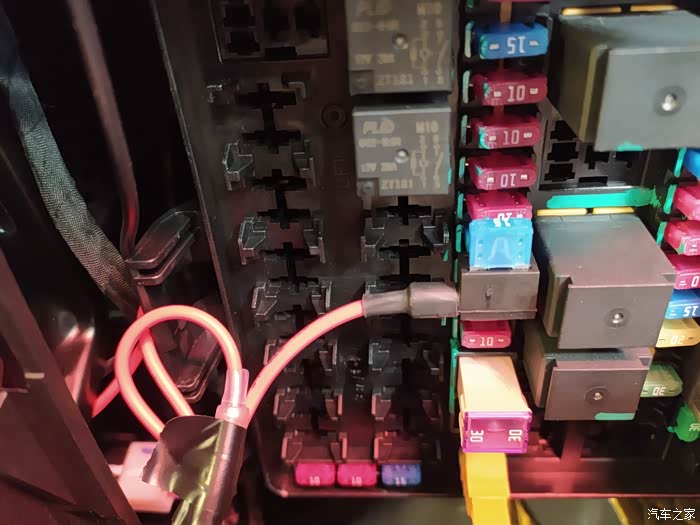 取电用的是15A的车辆电源位。网购的小号转接线头。地线接的是保险盒的那个黑螺丝。
