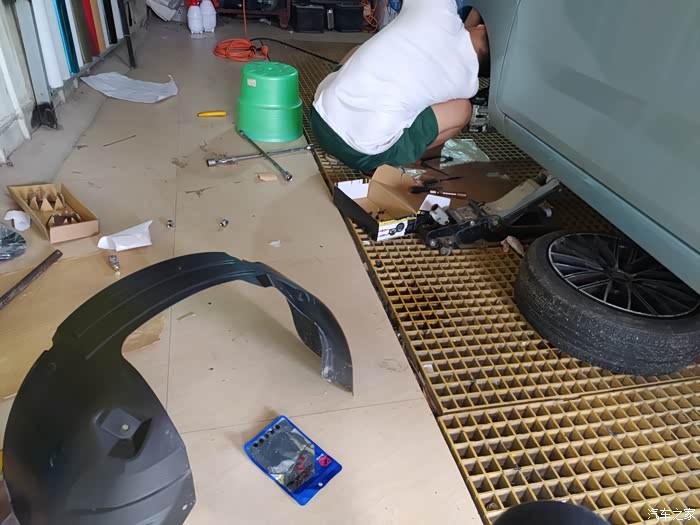 至此,车内部分的折腾完毕,装椅子回来就差不多了,准备拆轮子,做前轮叶子板隔音。