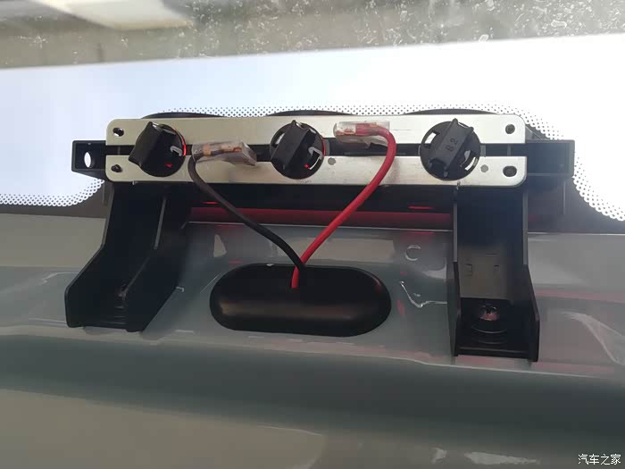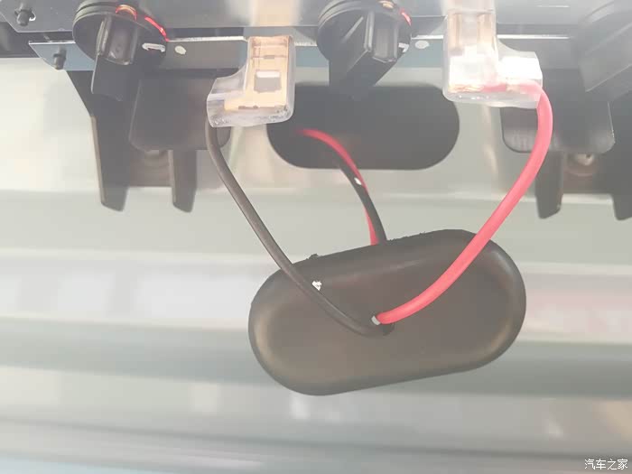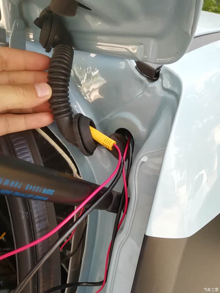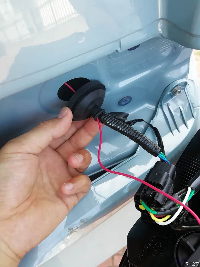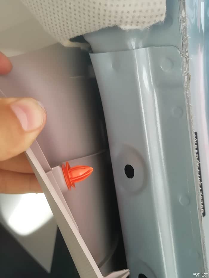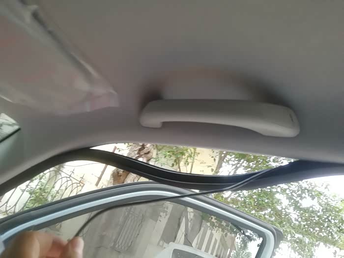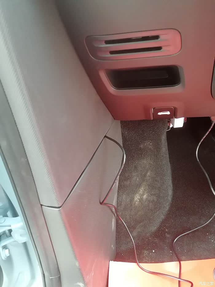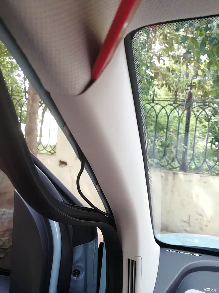 这边再穿到C柱里面饰板下,把接倒车灯的红线一起带过来,注意有两层钢板,要穿到有海绵那层。