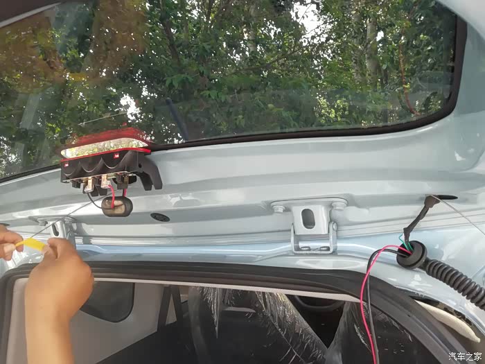 高位刹车灯盖下后方钻个孔,后摄像头罗马头带线穿进去
